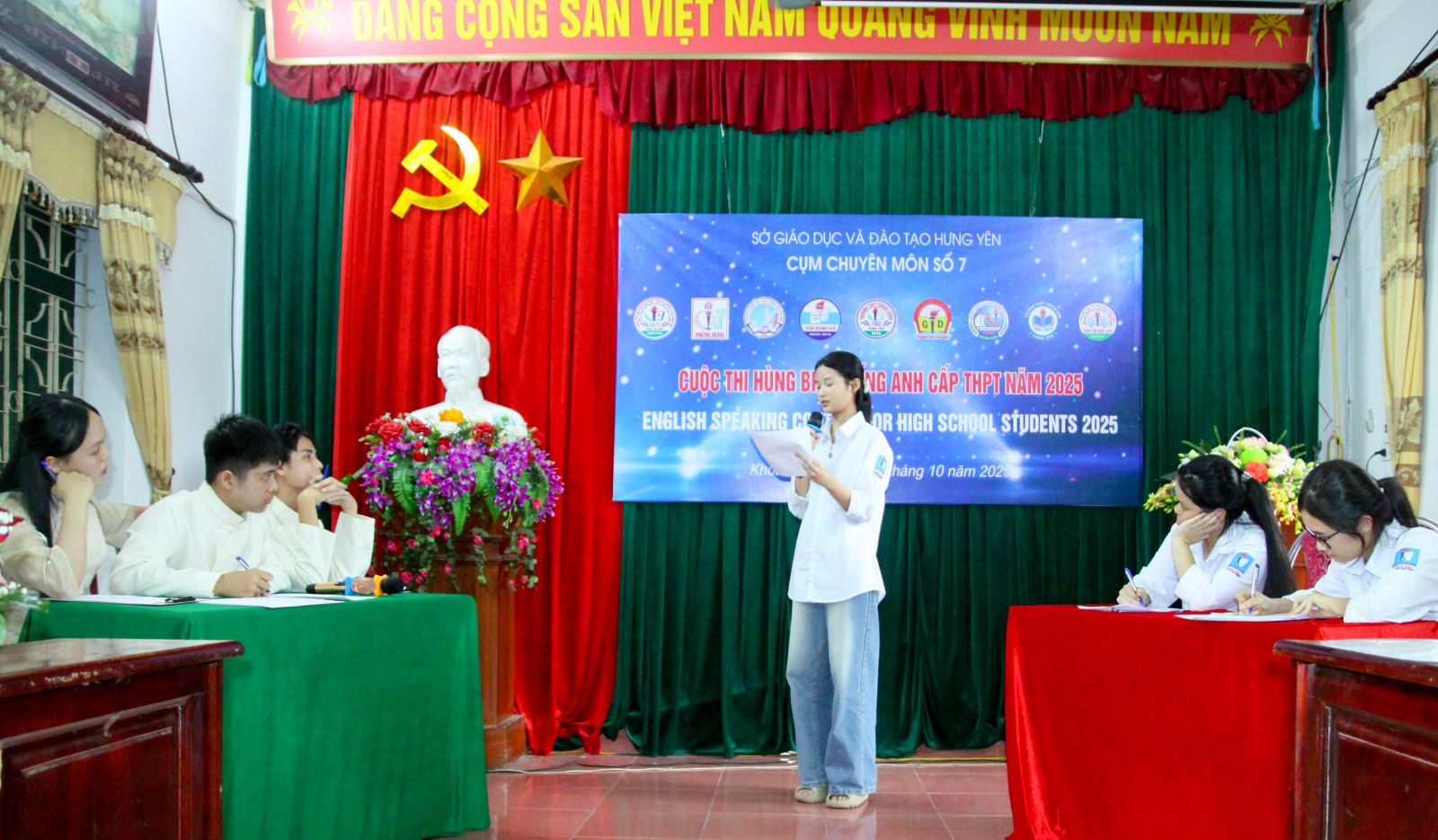 Ngày 14/10/2025, tại trường THPT Khoái Châu, các trường thuộc Cụm chuyên môn số 7 đã phối hợp tổ chức cuộc thi “Hùng biện Tiếng Anh cấp THPT” năm 2025. Đây là một sân chơi bổ ích, tạo điều kiện để học sinh rèn luyện khả năng ngôn ngữ, kỹ năng thuyết trình và tư duy phản biện, giúp học sinh có cơ hội phát triển toàn diện và khơi dậy niềm đam mê với tiếng Anh.