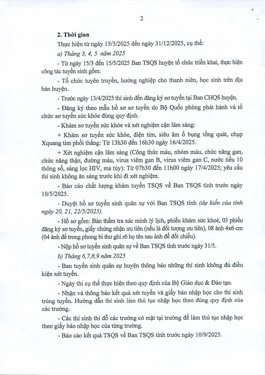 KẾ HOẠCH TUYỂN SINH QUÂN SỰ 2025(04/04/2025)