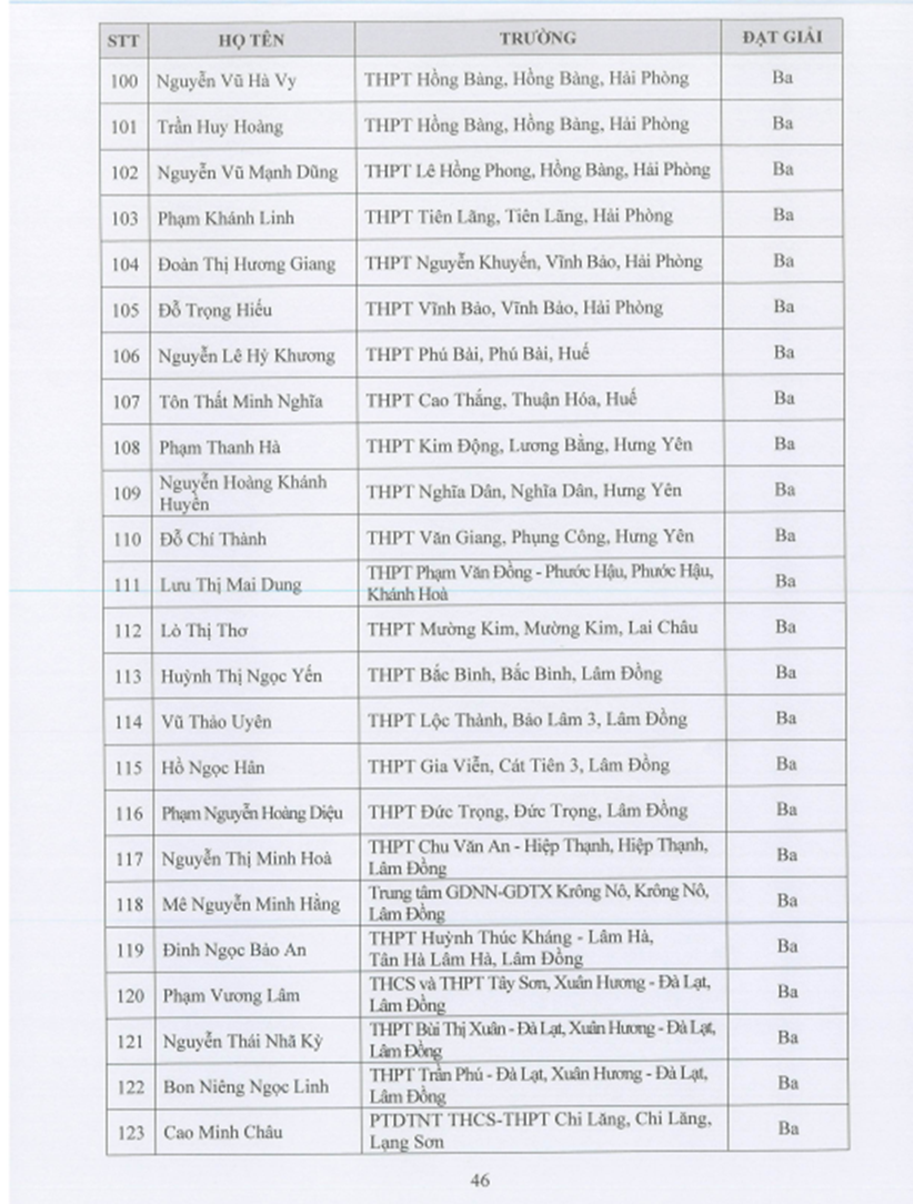 Danh sách giáo viên, học sinh nhận giải Ba và giải KK cuộc thi ATGT cho nụ cười ngày mai cấp quốc gia, năm học 2024-2025(01/04/2025)