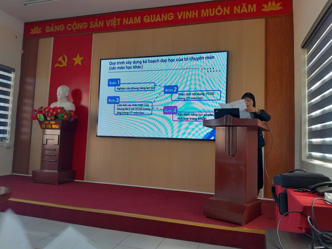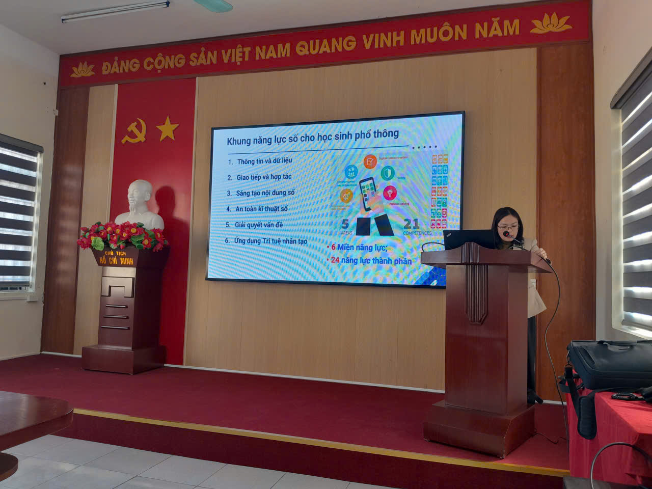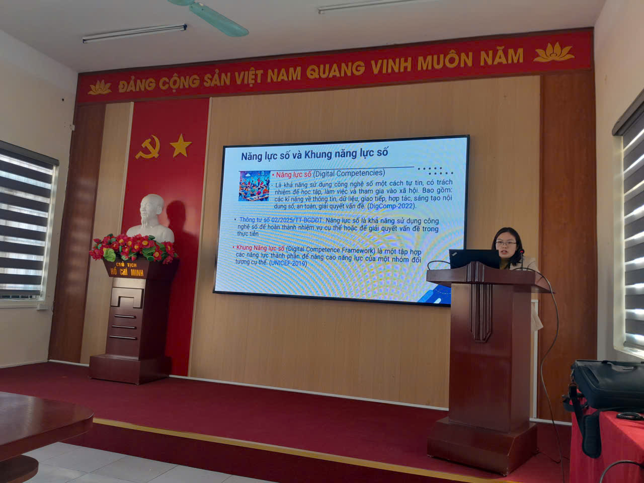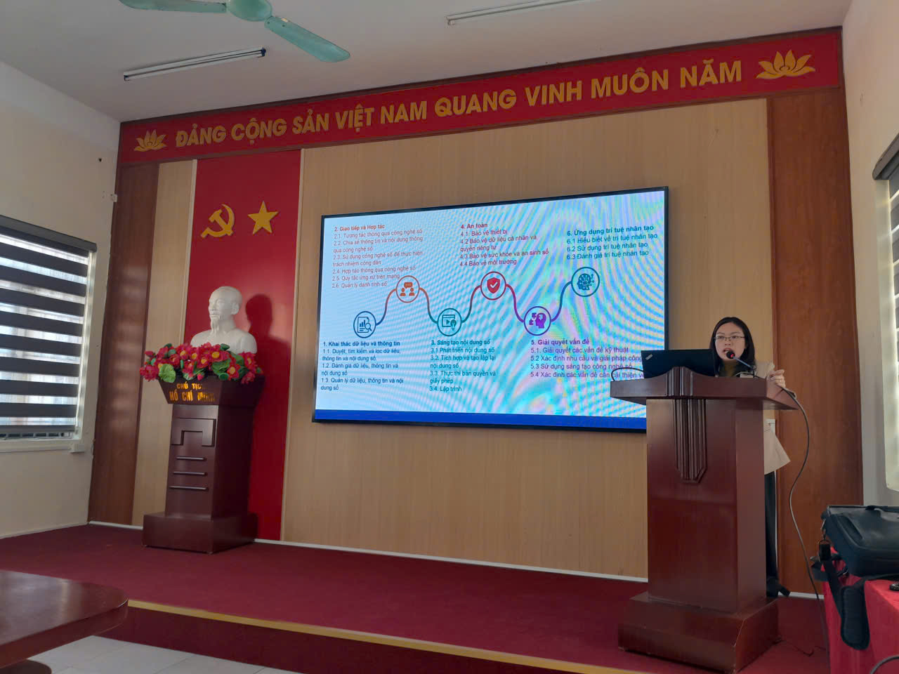 Trong bối cảnh chuyển đổi số đang diễn ra mạnh mẽ trong mọi lĩnh vực, giáo dục phổ thông đứng trước những yêu cầu mới: đào tạo học sinh không chỉ vững kiến thức mà còn phải thành thạo năng lực số - ứng xử có trách nhiệm trong môi trường trực tuyến. Nhằm nâng cao hiệu quả giảng dạy, cập nhật phương pháp và thống nhất định hướng chuyên môn, chiều ngày 22/11/2025 Trường THPT Nghĩa Dân đã tổ chức “Hội thảo phát triển năng lực số và giáo dục kỹ năng công dân số cho học sinh phổ thông” đối với cán bộ giáo viên trong trường.