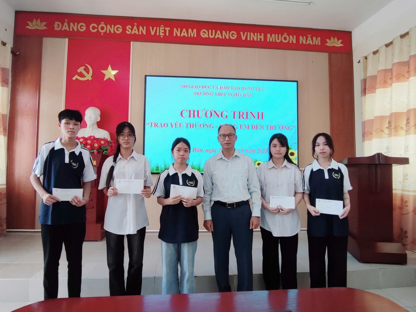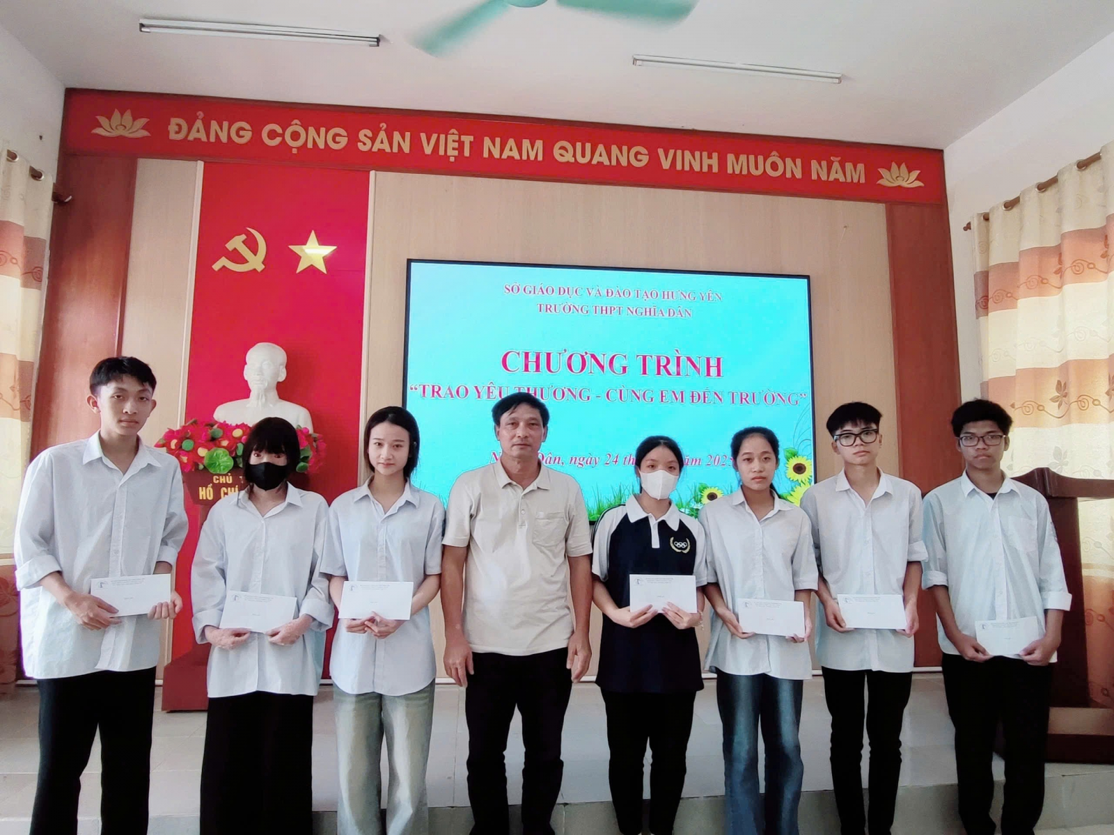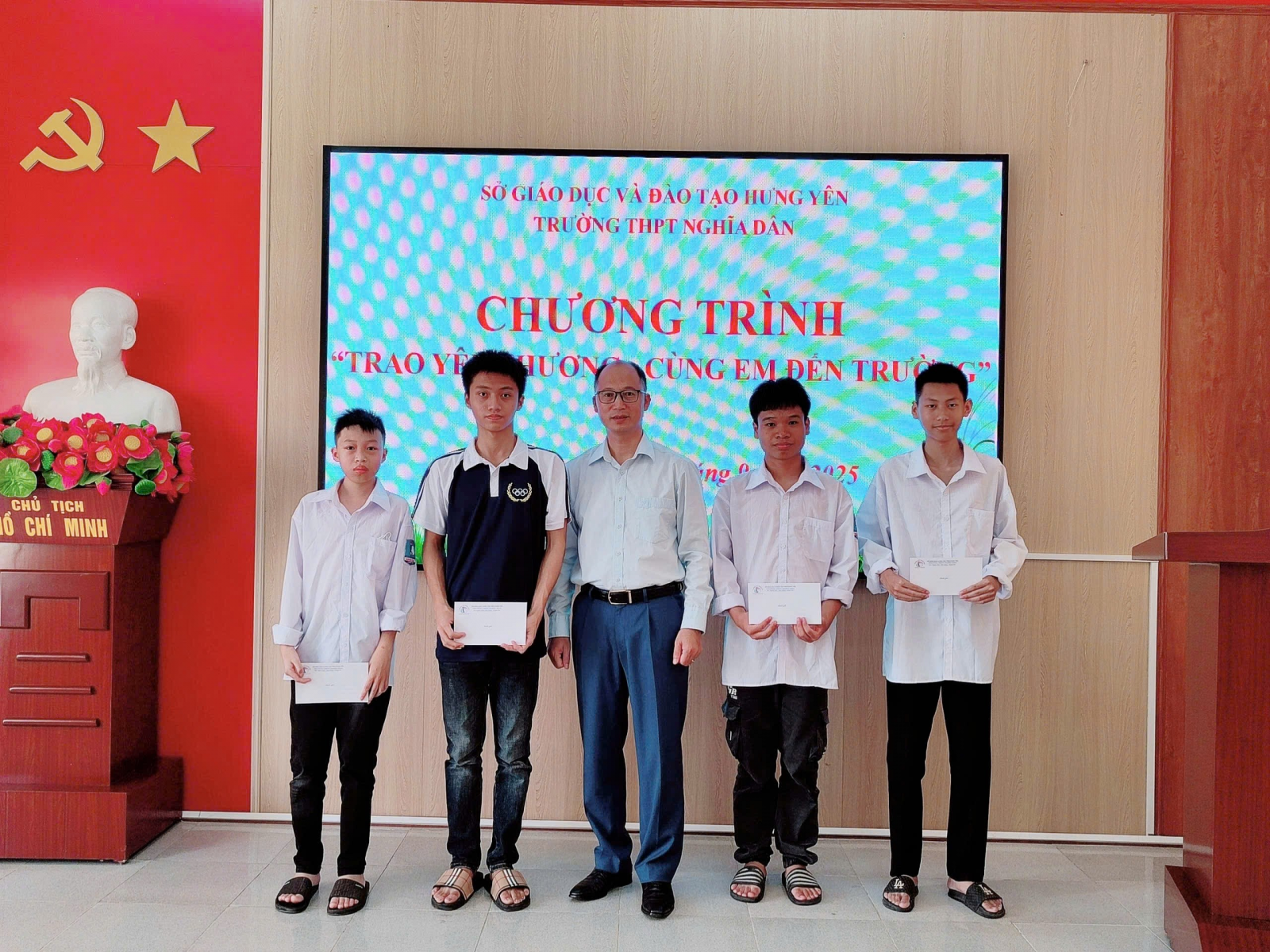 Nhân dịp đầu năm học mới 2025-2026, ngày 24/9/2025 trường THPT Nghĩa Dân đã tổ chức chương trình “Trao yêu thương - Cùng em đến trường”. Chương trình được tổ chức nhằm mang đến sự sẻ chia, động viên và hỗ trợ kịp thời cho các em học sinh có hoàn cảnh khó khăn. Đây không chỉ là hoạt động thiết thực giúp các em vững bước tới trường, mà còn là minh chứng cho tinh thần đoàn kết, nhân ái của cộng đồng.