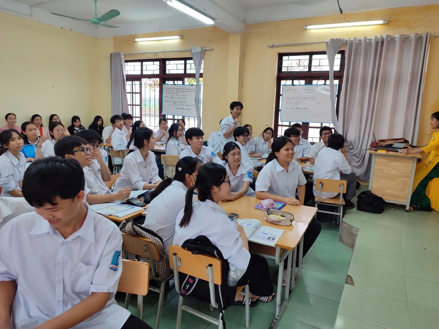 (Hình ảnh: Cô giáo Nguyễn Thị Ly và học sinh hăng say trong giờ học)