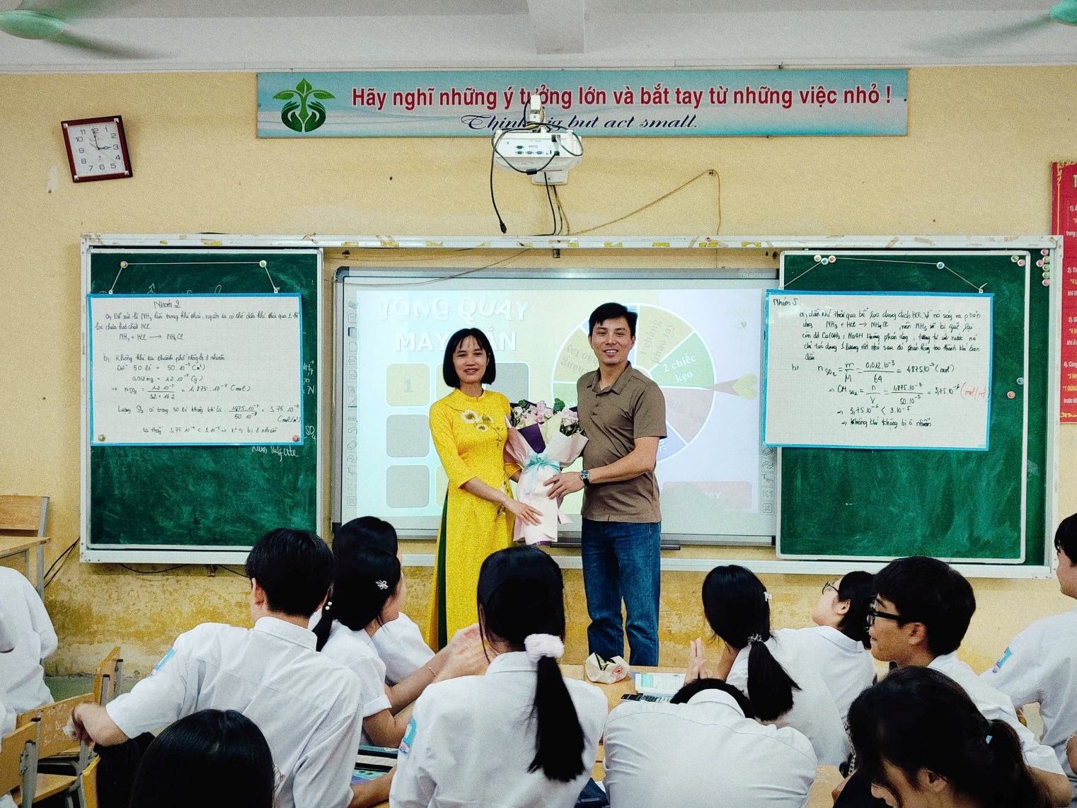 (Hình ảnh: Đồng nghiệp chúc mừng giờ dạy của giáo viên)