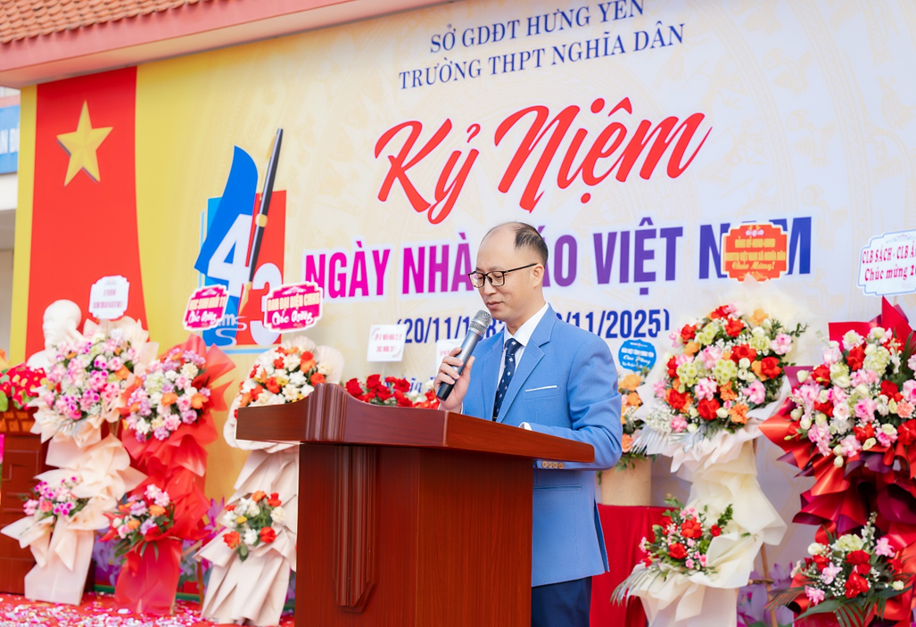 Phát biểu tại buổi lễ kỷ niệm, thầy Đào Ngọc Hai - Bí thư chi bộ, Hiệu trưởng nhà trường - đã ôn lại truyền thống của Ngày Nhà giáo Việt Nam và gửi lời cảm ơn sâu sắc đến toàn thể đội ngũ thầy cô giáo trong hành trình phát triển của trường THPT Nghĩa Dân.