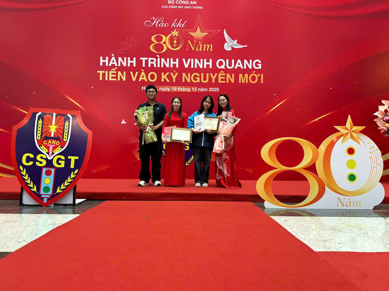 Với sự đầu tư công phu về nội dung, hình thức trình bày sáng tạo, tác phẩm dự thi của cô giáo Nguyễn Thị Kim Phúc, cô giáo Nguyễn Thị Hoài Hiên và hai em học sinh: Vũ Phạm Thành Đạt, Đào Thu Trang - Trường THPT Nghĩa Dân đã xuất sắc đạt giải, được Cục Cảnh sát giao thông trao thưởng chiều ngày 19/12/2025.