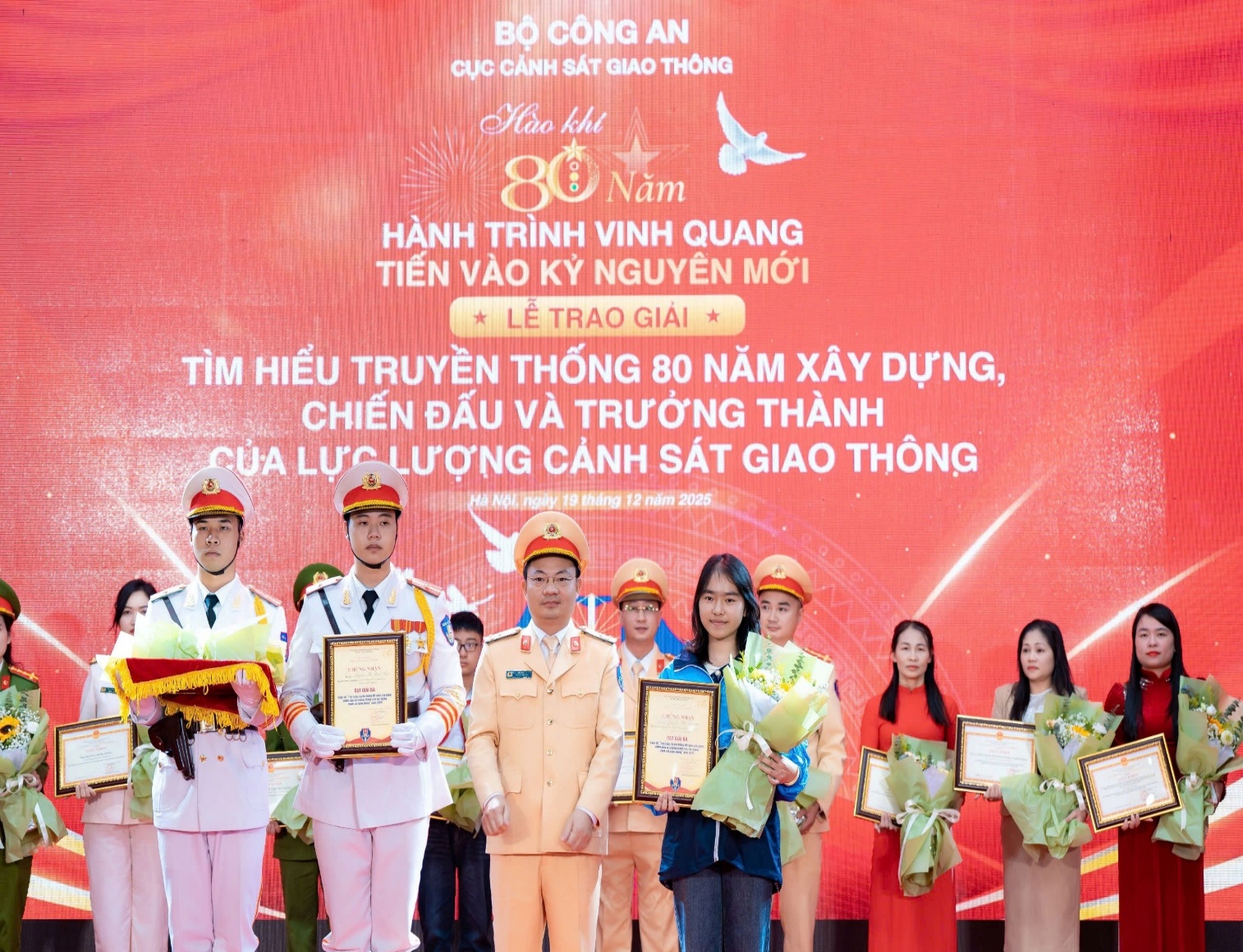 VINH DANH GIÁO VIÊN VÀ HỌC SINH ĐẠT GIẢI CUỘC THI “TÌM HIỂU TRUYỀN THỐNG 80 NĂM XÂY DỰNG, CHIẾN ĐẤU VÀ TRƯỞNG THÀNH CỦA LỰC LƯỢNG CẢNH SÁT GIAO THÔNG”(22/12/2025)